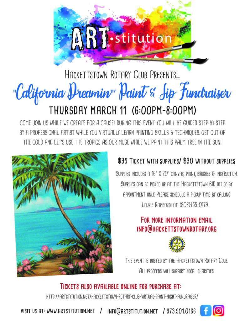 Hackettstown Rotary Club To Hold A California Dreamin Paint Sip Fundraiser On March 11 2021 Insider Nj